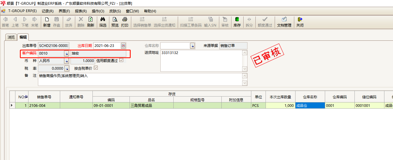 14.此时A公司的库内:也会生成一张出货单,为步骤1内(下单客户)的销售订单的出货单。